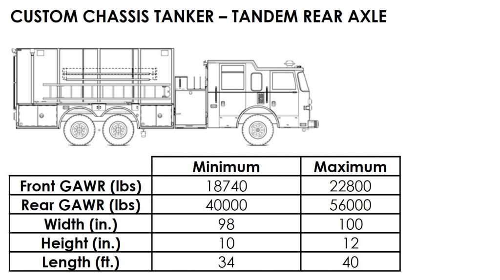The National Fire Protection Association maintains performance standards that apply to fire apparatus. NFPA 1901 Standard for Automotive Fire Apparatus[1] is adhered to by nearly every fire apparatus purchasing authority in the U.S. This NFPA standard establishes operational and safety criteria for all aspects of fire apparatus including the minimum water, equipment and hose capacity for each type of apparatus. These criteria necessitate the use of high capacity axles. The standard intentionally excludes any reference to vehicle size or weight limitations. Various emergency vehicle configurations and their range of typical sizes and weights are presented in Appendix A.